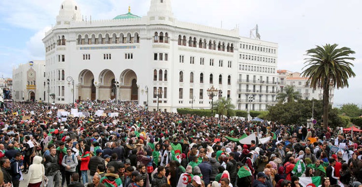خرج آلاف الجزائريين للجمعة الخامسة إلى شوارع العاصمة للمطالبة "باستقالة عبد العزيز بوتفليقة فورا" ...
