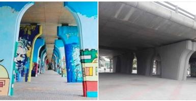 اثارت عملية طلاء أعمدة قنطرة القرش الأكبر بالعاصمة حفيظة الفنانين والرسامين الدين كانت رسوماتهم تزين المكان.