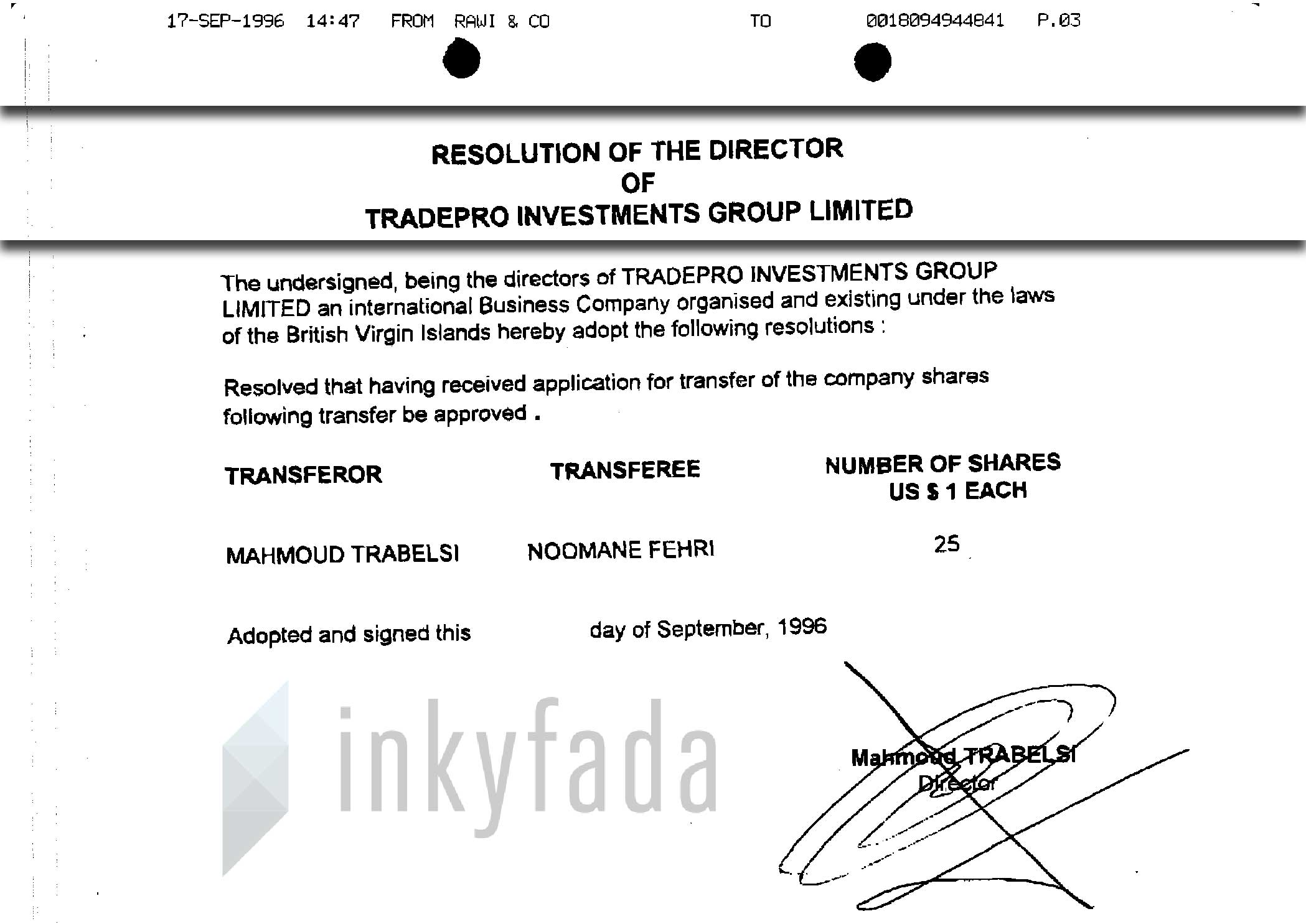 هذا وأكّد الموقع رئاسة نعمان الفهري لشركة تمّ إنشاؤها ببريطانيا سنة 1994، ووقع حلّها يوم 21 نوفمبر 2011 أي يوم واحد قبل من الجلسة الافتتاحية للمجلس التأسيسي، مُستدلا على ذلك ببعض الوثائق :