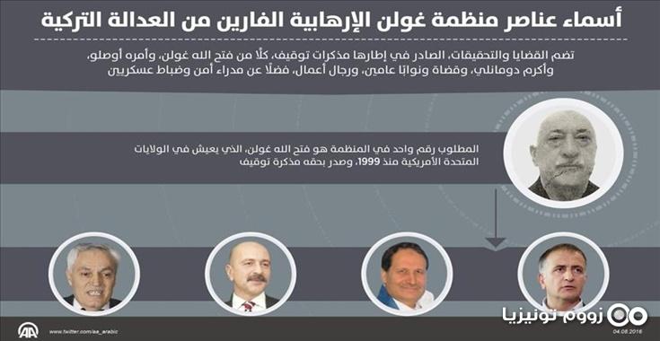 حيث ضمت القائمة رجال أعمال وقضاة وصحفيين عسكريين يتزعمهم المطلوب الأول فتح الله غولن.