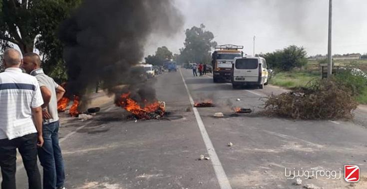القيروان: غلق الطريق الوطنية عدد2 واحتجاز حافلتين تُقلّان تلاميذ