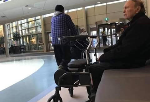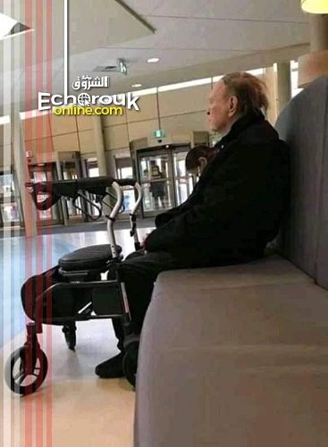 وظهر في الصورة رجل يشبه بوتفليقة كثيرا وهو جالس بقاعة يبدو أنها مستشفى، وأمامه نقالة تساعده على المشي.