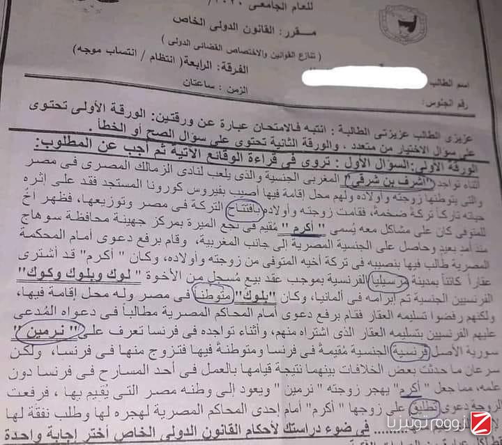 وحسب الورقة المتداولة، يتضمن السؤال مناقشة تنازع حول ميراث للاعب المغربي عقب وفاته افتراضيا متأثرا بإصابته بكورونا.