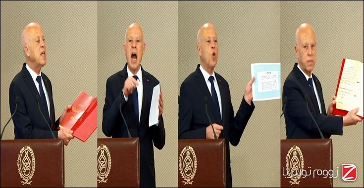وأضاف سعيّد ''جئتكم بالنص الأصلي للدستور الأول الذي ختمه الحبيب بورقيبة، وورد فيه رئيس الجمهورية هو القائد الأعلى للقوات العسكرية"، و"جئتكم بنص الدستور الذي ختمه المرحوم الجلولي فارس وينص على أن رئيس الجمهورية هو القائد الأعلى للقوات المسلحة العسكرية".