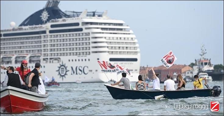 وذكرت وسائل إعلام محلية، أن مئات الأشخاص احتشدوا على الأرض وفي قوارب صغيرة رافعين الأعلام كتب عليها "لا للسفن الكبيرة".