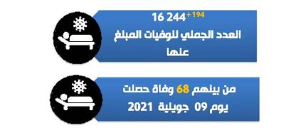 وقد أوضحت وزارة الصحّة في بلاغها اليومي، أنّ هذا الرقم لا يعود ليوم واحد حيث أنّ هنالك 68 وفاة حصلت يوم أمس 09 جويلية 2021.