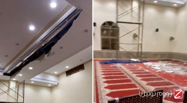 تداول رواد مواقع التواصل الاجتماعي مقطع فيديو لانهيار جزئي في سقف أحد المساجد خلال صلاة التراويح.