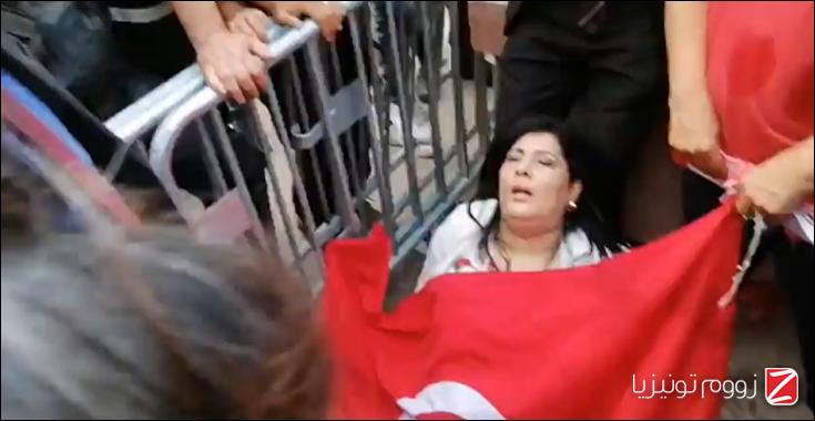 وقد أعادت قوات الأمن تمركز الحواجز بسرعة وسط حالة عنيفة من التشابك بالايدي و التدافع شهدت على اثرها رئيسة الحزب الدستوري الحر حالة من الدوار و فقدان الوعي ليتم نقلها عبر سيارة الإسعاف التي ظهرت بداخلها وهي تقول "ماتخليوهش يعمل الإستفتاء راهم بش يهربو بتونس".