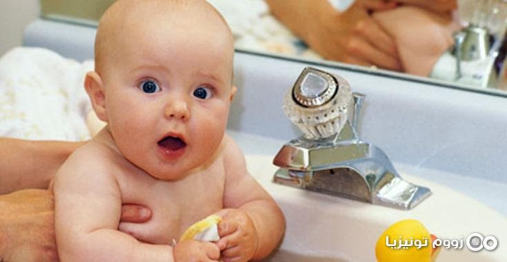 تكون بشرة الطفل أكثر حساسية مقارنة ببشرة البالغين وأن تعرض الطفل للمياه الساخنة قد يضر ببشرته؛ لذا ينصح بأن تكون درجة حرارة المياه الساخنة 38 درجة مئوية كحد أقصى، كذلك يجب أن يتأكد الآباء من درجة حرارة المياه قبل استحمام الطفل بالترمومتر ثم بساعدهم.