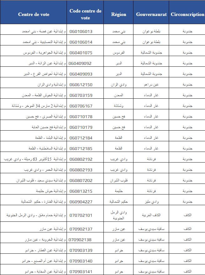 قائمة مكاتب الاقتراع التي ستعمل بتوقيت استثنائي