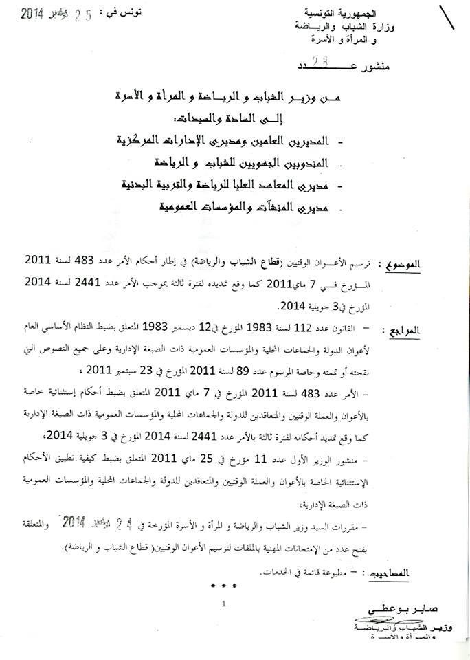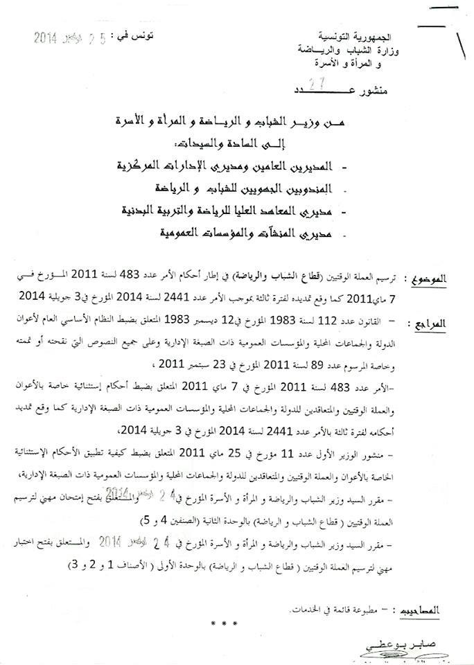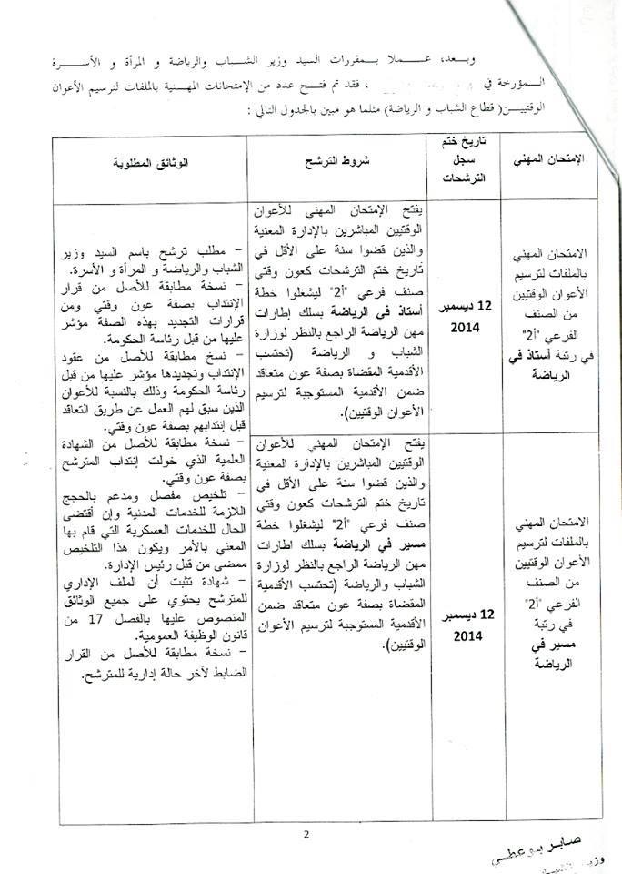 كما تم فتح عدد من الامتحانات المهنية الاخرى لترسيم الاعوان الوقتيين في قطاعي الشباب والرياضة.