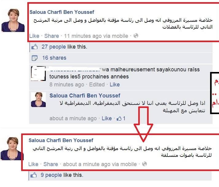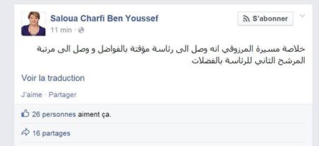 واعتبرت الشرفي أنّ وصول المرزوقي إلى الدور الثاني كان عبر "الفضلات" وفق تعبيرها.