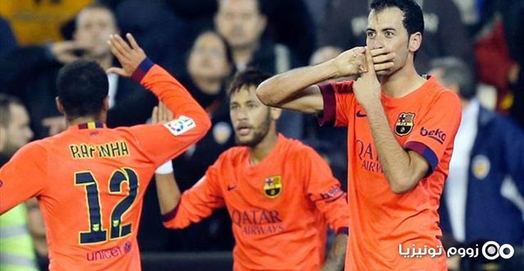 فاز نادي برشلونة، اليوم الأحد، على مضيفه فالنسيا بهدف دون رد في الثانية الأخيرة من عمر المباراة التي جمعت بين الفريقين على ملعب ألمستايا ضمن منافسات الجولة الثالثة عشر للدوري الإسباني لكرة القدم. وسجل سيرجيو بوسكيتش هدف الفوز لبرشلونة في الثانية الأخيرة من عمر المباراة، ليطلق حكم اللقاء صافرة النهاية بعد الهدف مباشرة. وجاءت المباراة في مجملها مثيرة وحماسية من جانب لاعبي الفريقين، وتبادلا الهجمات منذ أول دقيقة في اللقاء، وكان فالنسيا الأخطر في أغلب فترات اللقاء، إلا أن مهاجميه فشلوا في ترجمة الفرص التي سنحت لهم إلى أهداف فعلية. وفي الثانية الأخيرة، مرر الأرجنتيني ليونيل ميسي كرة عرضية انقض عليها البرازيلي نيمار دا سيلفا، إلا أن حارس فالنسيا تصدى لها لتجد سيرجيو بوسكيتش الذي سدد كرة قوية في المرمى. وبهذا الفوز، ارتفع رصيد برشلونة إلى 31 نقطة في المركز الثاني بفارق نقطتين فقط عن ريال مدريد المتصدر.