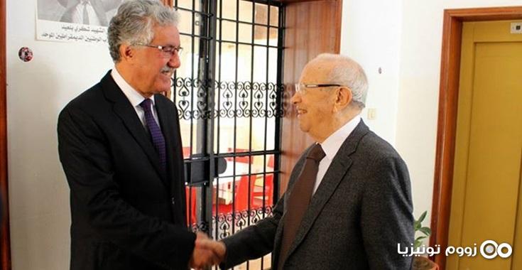 والتقى السبسي خلال زيارته الناطق الرسمي للجبهة ومرشحها في الدور الأول من الرئاسيات حمة الهمامي.
