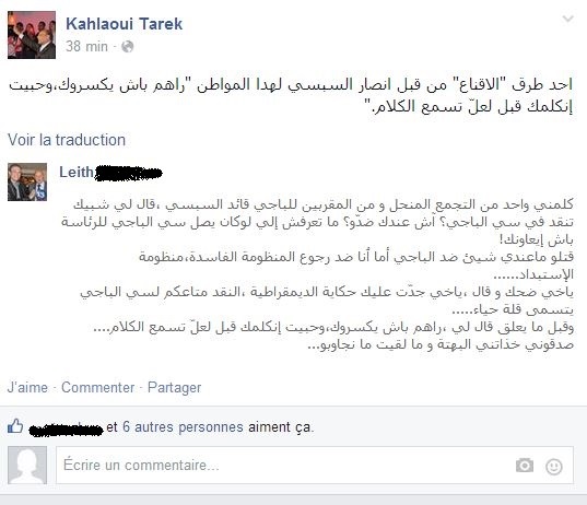 حيث أكّد أحد المواطنين تلقّيه اتّصالا هاتفيّا من طرف "أحد المنتمين للتجمع المنحل ومن المقربين للباجي قائد السبسي" واستنكر نقده للسبسي متسائلا عن سبب هذا النقد، مؤكّدا له أنّ إذا وصل الباجي إلى الرئاسة فسيساعده.