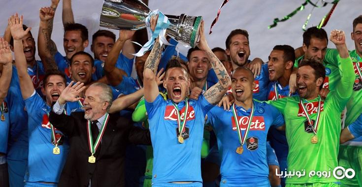 توّج نادي نابولي، اليوم الإثنين، بلقب كأس السوبر الإيطالي لكرة القدم للمرة الثانية في تاريخه وبعد غياب 24 عاما. وتغلب نابولي على يوفينتوس بنتيجة 6-5 بركلات الجزاء الترجيحية بعد انتهاء الوقت الأصلي والشوطين الإضافيين بالتعادل الإيجابي بهدفين لكل منهما، وذلك في المباراة التي أقيمت بينهما على ملعب جاسم بن حمد في العاصمة القطرية الدوحة. وكانت آخر مرة توّج فيها نابولي باللقب عام 1990، لينهي هيمنة يوفينتوس على اللقب في الموسمين الماضيين 2012 و2013. وجاءت أهداف المباراة في أشواطها الأربعة بأقدام أرجنتينية، حيث بادر يوفينتوس بالتسجيل في الدقيقة الخامسة عن طريق كارلوس تيفيز. وفي الدقيقة 65 أدرك نابولي التعادل عن طريق غونزالو هيغواين ليلعب الفريقان شوطين إضافيين. وفي الشوط الإضافي الأول وتحديدا في الدقيقة 106 سجل تيفيز الهدف الثاني له ولفريقه، ولكن جاءت الدقيقة 118 لتشهد معها هدف التعادل لنابولي عن طريق هيغواين. وجاءت ركلات الجزاء الترجيحية مثيرة في مجملها من جانب لاعبي الفريقين، حيث لعبا 18 ركلة جزاء موزعة على الفريقين، فأهدر يوفينتوس أربع ركلات جزاء ترجيحية، بينما أضاع نابولي ثلاث ركلات جزاء. ولم يتمكن يوفينتوس من تصدر قائمة الأندية الإيطالية الفائزة باللقب، حيث يمتلك في رصيده 6 ألقاب متساويا مع اي سي ميلان، بينما فاز انتر ميلان باللقب (5 مرات)، ثم لاتسيو وروما لكل منهما ( 3مرات)، ونابولي مرتين، بينما فاز ناديا فيورنتينا وبارما برصيد مرة واحدة لكل منهما. وتقام المباراة خارج إيطاليا للمرة السابعة في تاريخ بطولة كأس السوبر الذي يمتد على مدار 27 عاما، حيث سبق لها أن أقيمت في واشنطن الأمريكية عام 1990، وفي طرابلس الليبية عام 2002 ، وفي نيويورك الأمريكية عام 2003 إضافة لإقامتها في العاصمة الصينية بكين ثلاث مرات في أعوام 2009 و2011 و2012.