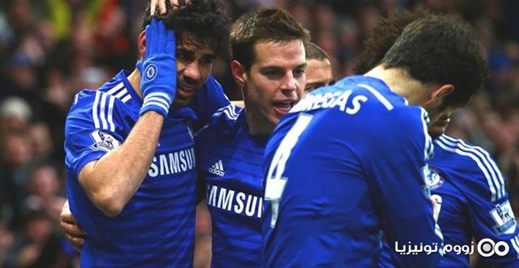 حقق فريق تشيلسي فوزاً هاماً أمام ضيفه وست هام بهدفين مقابل لا شئ في اطار منافسات الجولة الثامنة عشر من البريمييرليغ . أحرز المدافع الانجليزي جون تيري هدف فريقه الأول في الدقيقة 31 من زمن المباراة، وأضاف هداف الفريق الاسباني ديغو كوستا الهدف الثاني في الدقيقة 62 .و بهذه النتيجة ارتفع رصيد تشيلسي إلى النقطة 45 لينفرد بالصدارة بعد مرور 18 جولة، في حين تجمد رصيد الهامرز عند 31 نقطة ليصبح حفاظهم على المركز الرابع صعباً للغاية في ظل منافسة ساوثهابتون الشرسة لهم على هذا المركز المؤهل لبطولة دوري الابطال .
