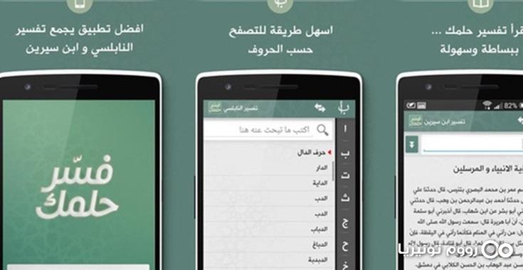 لكن المُشكلة في صحّة التفاسير المطروحة، والتي لا يمكن الوثوق فيها إلا في بعض المواقع فقط. لذا يُمكن لمستخدمي أندرويد الاستفادة من تطبيق فسر حلمك تفسير الاحلام العربي والمجاني، والذي يوفّر قاعدة بيانات كبيرة لتفسير الأحلام، مع توفير ميزات كثيرة مثل مُحرك بحث مُتطور، وميزة مشاركة التفسير والتحكم بحجم الخط داخل التطبيق- وفقا لما ذكرتة " البوابة العربية للأخبار التقنية "-. بعد تشغيل التطبيق، يُمكن استعراض التفسير حسب الترتيب الأبجدي، أو يُمكن اختيار مُحرك البحث لإيجاد تفسير حسب العنوان أو حسب المحتوى، وما يُميّز التطبيق هو الجمع بين تفسير النابلسي وابن سيرين.