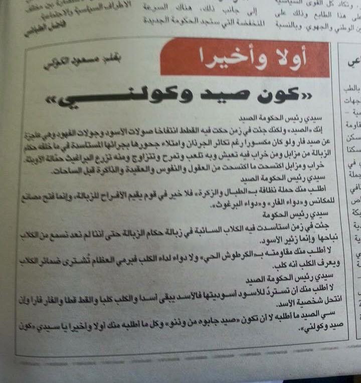 وجاء هذا المقال كمساندة لرئيس الحكومة المكلف بتشكيل الحكومة الحبيب الصيد، واعتبر رواد الفضاء الافتراضي أنّ عملية المناشدة انطلقت حتى قبل تعيين الصيد رسميا.