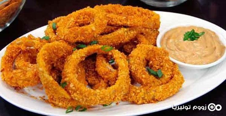 6- أتركيها فقط في المقلاة لتأخذ اللون الذهبي واخرجيها وتستمتعي بأجمل حلقات بصل مقرمشة جميلة.