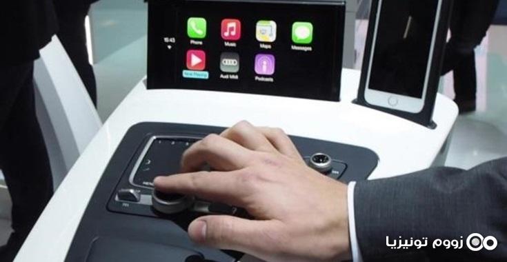 .كل ماعليك “هذا أذا كنت ستقوم بشرائها” هو التوجه إلى شاشة الموجودة بداخل أبل وسترى شيء اسمه Audi HMI وهي منصة موجودة بجانبك وسترى الشاشة وبجانبها مسند هذا المسند سيسمح لك بوصل هاتفك الأيفون أو الأندرويد ومن ثم ستظهر المنصّة على نفس الشاشة وستتغير الواجهة الكاملة حسب النظام الموجود بهاتفك وبعد ذلك يمكنك التحكم بالواجهة من خلال عجلة صغيرة كما أن هنالك زرّ لتفعيل الأوامر الصوتية سواء كان من Siri أو كان من Google Now.أودي وضحت أن كل هذا سيكون موجود في أودي كيو 7 نسخة 2016.