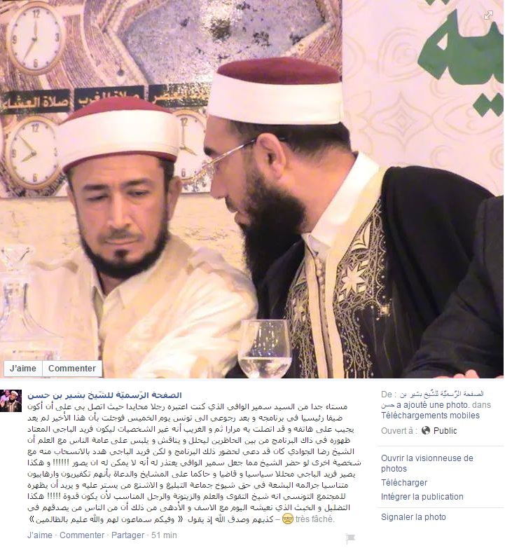 وأكّد بن حسن أنّ رئيس جمعية دار الحديث الزيتونية، فريد الباجي، أصبح محللا سياسيا و قاضيا و حاكما علی المشايخ والدعاة بأنهم تكفيريون وارهابيون متناسيا جرائمه البشعة في حق شيوخ جماعة التبليغ وفق تعبيره.