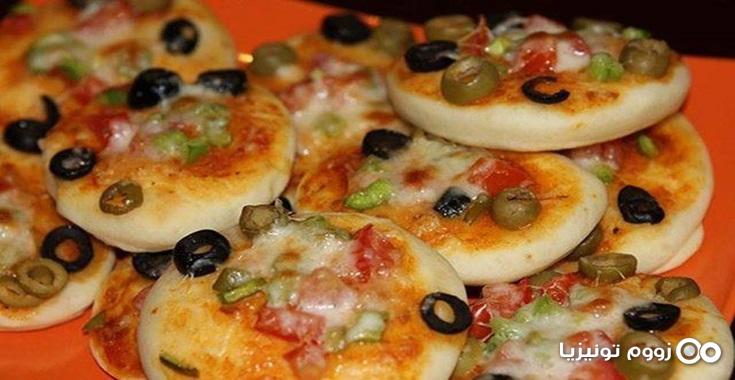 حضري صلصة البيتزا والمتكونة من زيتون أسود وأخضر، طماطم، فلفل وجبنة موتزاريلا مبشورة.