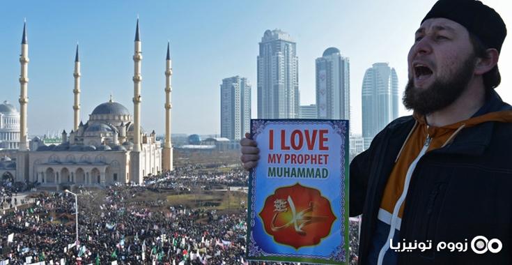 و قد ألقى رمضان قادروف رئيس الشيشان كلمة وسط المحتجّين مدافعا فيها على القيم الإسلاميّة، كردّ على الرسوم المسيئة للنبيّ محمّد (ص) التي نشرتها صحيفة "شارلي ايبدو".