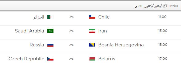 مواعيد مباريات غدا الثلاثاء 27 جانفي