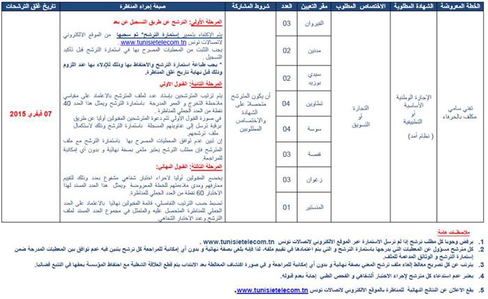 وتهدف هذه المناظرة إلى إنتداب 22 تقني سامي بصفة متعاقدين و ذلك للعمل ببعض إداراتها الجهوية و قد حدد آخر أجل لتقديم الترشحات يوم 7 فيفري 2015.