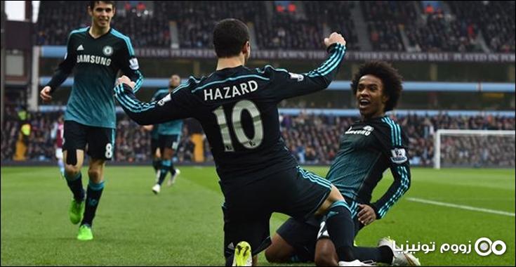حافظ نادي تشيلسي، اليوم السبت، على صدارته للدوري الإنجليزي لكرة القدم، بعد فوزه على مضيفه أستون فيلا بهدفين مقابل هدف ضمن منافسات الجولة الرابعة والعشرين للمسابقة. وتقدّم تشيلسي بهدف عن طريق البلجيكي إيدين هازارد في الدقيقة الثامنة، لينتهي الشوط الأول بتقدم النادي اللندني بهدف دون رد. وفي الشوط الثاني، نجح أستون فيلا في تسجيل التعادل عن طريق جوريس أوكوري في الدقيقة 48. وجاء هدف أستون فيلا بعدما غاب عن زيارة شباك منافسيه في آخر ست مباريات، وبالتحديد منذ مواجهة مانشستر يونايتد في العشرين من ديسمبر/ كانون الأول الماضي. والطريف أن الهدف جاء بعدما هاجم جمهور أستون فيلا فريقه بطريقة مبتكرة في المدرجات، حيث تم رفع لافتات تشير إلى اتجاه المرمى الذي يجب أن يسجل فيه الفريق. وبعدها تبادل الفريقان الهجمات، إلى أن جاءت الدقيقة 66 لتشهد معها الهدف الثاني لتشيلسي عن طريق الصربي برانسلاف ايفانوفيتش. وبهذا الفوز، ارتفع رصيد تشيلسي إلى 56 نقطة في الصدارة، بينما تجمد رصيد أستون فيلا عند 22 نقطة في المركز السادس عشر. وفي مباراة ثانية، تعادل مانشستر سيتي مع ضيفه هال سيتي بهدف لكل منهما، ليرتفع رصيد الأول إلى 49 نقطة في المركز الثاني، بينما ارتفع رصيد الأخير إلى 20 نقطة في المركز السابع عشر. وبادر هال سيتي بالتسجيل عن طريق دافيد ميلر في الدقيقة 35، ونجح مانشستر سيتي في تسجيل التعادل عن طريق جيمس ميلنر في الدقيقة 90. وأسفرت مباريات أخرى اليوم عن فوز ساوثهامبتون على كوينز بارك رينجرز بهدف نظيف، وبالنتيجة ذاتها، تغلب كريستال بالاس على ليستر سيتي، بينما تعادل سوانزي سيتي مع سندرلاند بهدف لكل منهما. وكان توتنهام قد فاز في وقت سابق اليوم على أرسنال بهدفين لهدف.