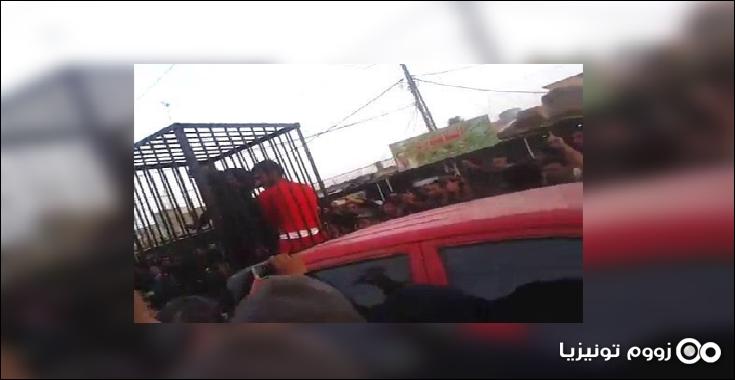 و يظهر الفيديو عدة أقفاص كل قفص يحتوي على محتجز وضعت في سيارات تجوب شوارع غير معروفة و لكنها من المناطق التي يسيطر عليها التنظيم.