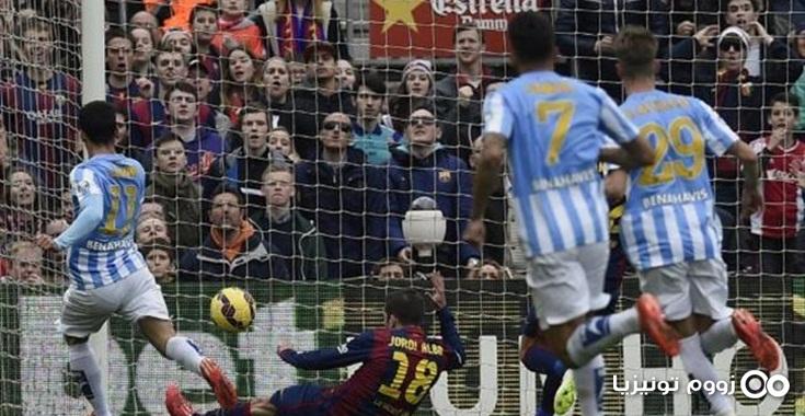 حقق فريق ملقا انتصارا مستحقا على فريق برشلونة بنتيجة 1-صفر على ملعب كامب نو السبت ضمن منافسات الدوري الاسباني لكرة القدم من الاسبوع 24. وتجمد رصيد برشلونة، الذي تلقى خسارته الرابعة هذا الموسم في المسابقة، عند 56 نقطة، ليظل في المركز الثاني بترتيب المسابقة، خلف غريمه التقليدي ريال مدريد (المتصدر) بنقطة واحدة، فيما رفع ملقا رصيده إلى 38 نقطة، ولكنه ظل في المركز السابع. وجاءت بداية المباراة قوية من فريق برشلونة صاحب الارض والجمهور والذي شكل ضغطا كبيرا على دفاعات ملقا منذ الدقيقة الاولى. وفي الدقيقة الـ7 استغل المهاجم الاسباني خوان ميغيل خطأ المدافع البرازيلي داني الفيش الذي قام بإرجاع خاطئ الى برافو لكن ميغل خطف الكرة وسددها داخل الشباك بكل هدوء. وانتفض فريق برشلونة بشكل رهيب بعد هدف ابناء الاندلس لكن الضغط الكتالوني الكبير لم يؤثر على دفاعات ملقا ولم يكن هناك الكثير من الفرص الخطيرة لمصلحة البرشا. وقدم ابناء الاندلس اداءا مميزا في الحصة الاولى وكان الدفاع الاندلسي صعب الاختراق على رفاق الدولي الارجنتيني ليونيل ميسي الذي لم يقدم الكثير في الشوط الاول. وعند الدقيقة 35 كاد اللاعب ريكاردو هورتا ان يسجل هدف ثاني لمصلحة فريق ملقا عندما سدد كرة قوية من داخل منطقة الجزاء لكن الحارس برافو تصدى لها بشكل بارع.