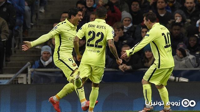 وضع برشلونة الأسباني قدما في دور الثمانية لبطولة دوري أبطال أوروبا لكرة القدم هذا الموسم بفوزه الثمين 2/1 على مضيفه مانشستر سيتي الإنجليزي الثلاثاء في ذهاب دور الستة عشر للبطولة. وقدم برشلونة واحدة من أفضل مبارياته في الموسم الحالي ليمحو بها آثار الهزيمة صفر/1 أمام ملقة في الدوري الأسباني السبت الماضي. ويدين برشلونة بالفضل الكبير في هذا الفوز الثمين إلى لاعبه الأرجنتيني ليونيل ميسي الذي صال وجال وأزعج مع زميله الكرواتي إيفان راكيتيتش دفاع مانشستر سيتي. كما يدين برشلونة بالفضل إلى الأوروجوياني لويس سواريز الذي سجل هدفي الفريق ليعزز فرص برشلونة بشكل هائل في بلوغ دور الثمانية قبل مباراة الإياب على ملعب الفريق. وحسم برشلونة المباراة بشكل كبير في شوطها الأول بفضل هدفين سجلهما الأوروجوياني لويس سواريز في الدقيقتين 16 و30 ليرفع رصيده مع برشلونة إلى أربعة أهداف في دوري أبطال أوروبا هذا الموسم. وفي الشوط الثاني ، أنعش الأرجنتيني سيرخيو أجويرو آمال مانشستر سيتي بتسجيل هدف حفظ ماء الوجه للفريق في الدقيقة 69 ولكن زميله جايل كليشي ضاعف من صعوبة اللقاء على أصحاب الأرض اثر طرده في الدقيقة 74 ليحافظ برشلونة على النتيجة ويقترب بشكل كبير من دور الثمانية حيث يكفيه التعادل أو الفوز بأي نتيجة في لقاء الإياب المقرر في 18 آذار/مارس المقبل على استاد "كامب نو" ببرشلونة.