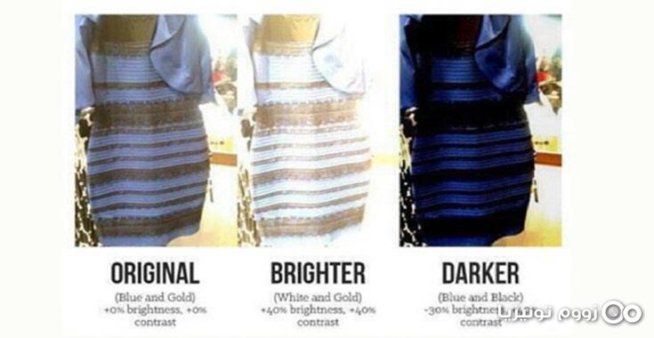 وبعض العقول الاخرى لا تستطيع ترجمة هذه الإشارة على هذا النحو، وتقوم بترجمتها أن الصورة مُلتقطة من وضعية عادية بدون أية اضاءة لذا يظهر باللونين الأسود والأزرق، وذلك بسبب اختلاف تحليل الألوان بين كل شخص وآخر، وكذلك صعوبة تمييز الدماغ للألوان الضوء الساقط على الفستان، فعلى سبيل المثال أن درجة الأحمر التي تراها ليست كدرجة الأحمر التي يراها صديقك !