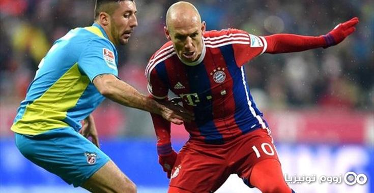 سجل الهولندي آريين روبن هدفا وصنع هدفين ليقود بايرن ميونيخ إلى الاحتفال بعيد تأسيسه ال115 من خلال الفوز الثمين 4/1 على كولون الجمعة في افتتاح مباريات المرحلة الثالثة والعشرين من الدوري الألماني لكرة القدم (بوندسليغا) . وقدم بايرن أداء راقيا على مدار الشوطين رغم غياب التركيز في بعض الفترات من هذه المباراة التي تزامنت مع العيد ال115 لتأسيس نادي بايرن ميونيخ في 1900 . وأنهى بايرن الشوط الأول لصالحه بهدفين سجلهما باستيان شفاينشتيغر والفرنسي فرانك ريبيري في الدقيقتين الثالثة والعاشرة مقابل هدف سجله النيجيري أنتوني يوجا في الدقيقة الأولى من الوقت بدل الضائع لهذا الشوط. ورغم البداية الساحرة لبايرن في هذه المباراة التي ترجمها إلى هدفين مبكرين وسيطرة واضحة واستحواذ تام على الكرة ، كان غياب التركيز وعدم الدقة في إنهاء الهجمات سببا في عدم تسجيل مزيد من الأهداف. ومنح الهدف الذي سجله يوجا في نهاية الشوط الأول فريق كولون كثيرا من الصقة ليتبادل الفريق الهجمات مع مضيفه في بعض فترات الشوط الثاني حيث كان على وشك التعادل أكثر من مرة في منتصف هذا الشوط المثير. ولكن بايرن قضى على آمال ضيفه في الدقيقة 67 عندما سجل الهدف الثالث بضربة رأس رائعة من آريين روبن قبل أن يحرز البولندي روبرت ليفاندوفسكي الهدف الرابع للفريق في الدقيقة 75 . ورفع بايرن رصيده إلى 58 نقطة في صدارة جدول المسابقة موسعا الفارق مع فولفسبورج صاحب المركز الثاني إلى 11 نقطة لحين انتهاء باقي مباريات المرحلة فيما تجمد رصيد كولون عند 25 نقطة في المركز الثالث عشر بعدما فشل في تحقيق الفوز للمباراة الخامسة على التوالي في المسابقة.