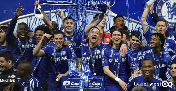 تّوج تشيلسي بلقب كأس الرابطة الإنجليزية المحترفة بفوزه على جاره اللندني توتنهام في المباراة النهائية التي جرت على ملعب ويمبلي وانتهت بفوز أسود غرب لندن بهدفين نظيفين، ليثأر مورينيو ورجاله من هزيمتهم النكراء "الشهيرة" أمام الديوك والتي وصل قوامها لخماسية مقابل ثلاث في بداية هذا العام، والأهم يبقى في عودة الكأس الغائبة عن النادي منذ موسم 2006-2007. بدأ اللقاء بضغط مُكثف من قبل الديوك كاد يُسفر عن هدف مُبكر عندما احتسب الحكم ركلة حرة مباشرة على حدود منطقة الجزاء، وانبرى لها الشاب الدنماركي "كريستيان إريكسن" الذي سدد من فوق الحائط البشري، لكن من سوء طالعه أنابت العارضة عن العملاق التشيكي "بيتر تشيك" ومنعت الكرة من الدخول للمرمى، قبل أن يظهر هداف العاصفة الساخنة "هاري كين" في الأضواء بتصويبة من على حدود منطقة الجزاء، لكن حامي عرين الأسود أمسك الكرة بثبات. تفوق توتنهام لم يستمر طويلاً، وبعد انتهاء الربع ساعة الأولى بدأ رجال جوزيه مورينيو في الدخول إلى أجواء المباراة، وكانت البداية بالانطلاقة التي قادها دييجو كوستا من الجهة اليسرى، ومن ثم أهدى القادم من الخف إلى الأمام "هازارد" تمريرة قابلها بتسديدة بقدمه اليسرى مرت فوق العارضة، بعدها مباشرة حاول ويليان خدافع هوجو لوريس بتصويبة من خارج منطقة الجزاء –من ركلة حرة ثابتة-، لكن الكرة ارتطمت في الحائط وذهبت إلى ركلة ركنية لم تُستغل. انحصر اللعب في وسط الملعب لأكثر من 20 دقيقة لم تشهد أي فرصة حقيقية على كلا المرميين، إلى أن دخل كوستا في شجار مع بن طالب، بعده أهدر إيفانوفيتش فرصة برأسه، ثم رد عليه إريكسن بتصويبة أكثر من رائعة تصدى لها تشيك ببراعة يُحسد عليها، قبل أن يوقع قائد البلوز "جون تيري" على اللقطة المضيئة الأولى قبل الذهاب إلى غرف خلع، وجاء الهدف عن طريق ركلة حرة غير مباشرة من الجهة اليمنى خارج منطقة الجزاء، أرسلها ويليان على رأس زوما الذي ارتدت منه الكرة، ثم ذهبت إلى تيري الذي قابلها بتسديدة سكنت الشباك. في نصف المباراة الثاني، وضح تفوق رجال مورينيو فنياً، بالذات في الدقائق العشر الأولى التي تعرض خلالها هوجو لوريس لأكثر من اختبار حقيقي، أبرزهم انطلاقة هازارد التي انتهت بعرضية نموذجية على القائم البعيد ولم تَجد من يودع الكرة في الشباك، وأيضاً الضربة المزدوجية الخلفية التي أطلقها كوستا من داخل منطقة الجزاء، وأنقذها حارس الديوك برشاقة، وفي تلك الأثناء، ظل أصحاب الجزء الأبيض من شمال لندن في وسط ملعبهم بسبب ضغط البلوز الهائل. بعد سيطرة تشيلسي على مجريات الأمور، كان طبيعياً أن يأتي الهدف الثاني، وجاء الهدف بعد وابل من التمريرات في وسط ملعب الديوك، وفي الأخير أرسل فابريجاس تمريرة حريرية لكوستا الذي هيأ الكرة لنفسه في الجهة اليسرى داخل منطقة الجزاء، ثم سدد لترتطم الكرة في أقدام كايل ووكر، وتغير مسارها إلى شباك الحارس الفرنسي الذي حاول مع الكرة، لكن دون جدوى، ليتحرر مورينيو خارج الخطوط. بعد الهدف الثاني، حاول توتنهام العودة إلى المباراة بتسجيل هدف تقليص الفارق على أقل تقدير، لكن رباعي دفاع تشيلسي ومن خلفهم العملاق التشيكي تشيك، نجحوا في غلق كل الطرق المؤدية للشباك الزرقاء، حتى بعد مشاركة الثلاثي "موسى ديمبلي، لاميلا وسولدادو"، وظل الوضع كما هو عليه إلى أن أطلق الحكم صافرة النهاية، معلناً فوز تشيلسي بهدفين نظيفين، ليتّوج بالبطولة الغائبة عنه منذ أكثر من سبعة أعوام.