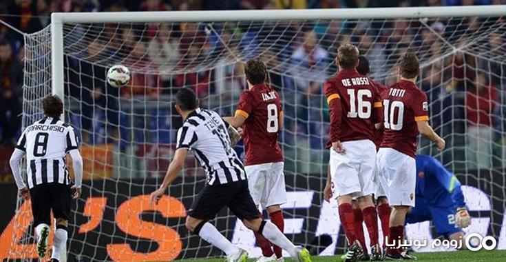 تعادل فريق روما بعشرة لاعبين مع ضيفه يوفنتوس بهدف لمثله في قمة مباريات الدوري الإيطالي لكرة القدم التي جمعت بينهما الاثنين في المرحلة الخامسة والعشرين من المسابقة. وجاء شوط المباراة الأول متواضع المستوى ثم تبدل الحال كثيرا في الشوط الثاني حيث فرض يوفنتوس هيمنته منذ البداية ولكن روما رغم النقص العددي تفوق في أخر ربع ساعة من المباراة واستحق تسجيل هدف التعادل. ونجح روما في إفساد جميع هجمات الفريق الضيف حتى جاءت الدقيقة 63 لتشهد طرد المدافع اليوناني فاسيليوس توروسيديس لعرقلته لاعب الوسط التشيلي ارتورو فيدال على حدود منطقة الجزاء، ليحصل يوفنتوس على ضربة حرة مباشرة نفذها الأرجنتيني كارلوس تيفيز بنجاح إلى داخل الشباك. وتكفل لاعب الوسط المالي المخضرم سيدو كيتا بتسجيل هدف التعادل لروما في الدقيقة 78عبر ضربة رأس قوية إثر تمريرة رائعة من اليساندرو فلورينزي أكملها كلاوديو ماركيزيو لاعب يوفنتوس بطريق الخطأ في مرمى فريقه. وقبل 13 جولة من نهاية الموسم رفع يوفنتوس رصيده إلى 58 نقطة في الصدارة بفارق تسع نقاط أمام روما صاحب المركز الثاني. وهذه هي المباراة رقم 175 بين الفريقين حيث فاز يوفنتوس في 84 مباراة وفاز روما في 42 مباراة وتعادلا في 49 مواجهة بينهما. وتغلب يوفنتوس على روما في مبارياتهما الثلاث الأخيرة بالدوري بينما يرجع آخر فوز لروما على السيدة العجوز بالدوري الإيطالي إلى 16 شباط/فبراير 2013 عندما فاز عليه بهدف نظيف بالملعب الأولمبي بالعاصمة الايطالية. ويرجع آخر تعادل بين الفريقين إلى 12 كانون أول/ديسمبر 2011 عندما تعادلا 1 / 1 بالدوري الإيطالي على الملعب الأولمبي. وانتهت مباراة الذهاب بفوز يوفنتوس 3 / 2 وشهدت المباراة جدلا تحكيميا بعد احتساب ثلاث ركلات جزاء للفريقين، وطرد الفارو موراتا من يوفنتوس وكوستاس مانولاس من روما بالإضافة إلى رودي جارسيا مدرب روما. تدهورت نتائج روما في الدوري الإيطالي مؤخرا حيث حقق الفوز مرة واحدة في أخر سبع مباريات بينما تعادل في المباريات الست الأخرى بينما فاز يوفنتوس في خمس من أخر سبع مباريات مقابل تعادلين. وخاض الفريقان المباراة بمعنويات مرتفعة بعد فوز يوفنتوس 2 / 1 على بوروسيا دورتموند الألماني في ذهاب دور الـ16 لدوري أبطال أوروبا وتأهل روما لدور الـ16 للدوري الأوروبي على حساب فينورد الهولندي.