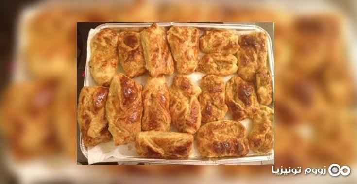 نفردها مرة أخرى و نطويها على ثلاث، و نحاول طوي مربع العجين على شكل مستطيل أي طوي الطرف بجهة اليمنى الى وسط المربع و الجهة اليسرى الى الوسط ثم نطوي الطرفين فوق بعضهما حتى نتحصل على مستطيل، و نتركها ترتاح.