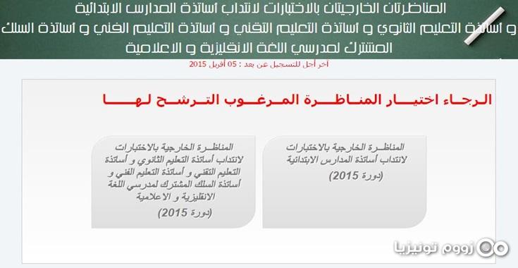 وتتمثّل المناظرة الخارجية بالاختبارات في انتداب أساتذة التعليم الثانوي وأساتذة التعليم التقني وأساتذة التعليم الفني وأساتذة السلك المشترك لمدرسي اللّغة الانقليزية والإعلامية - دورة 2015.