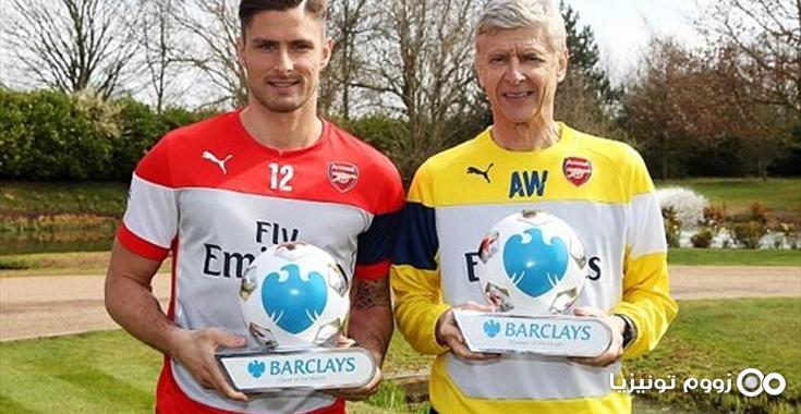 اختير ارسين فينغر مدرب ارسنال واوليفييه جيرو مهاجم الفريق الجمعة لنيل جائزة أفضل مدرب ولاعب في الدوري الانجليزي الممتاز لكرة القدم على الترتيب عن الشهر الماضي وهو ما يشكل دعما مزدوجا للفريق قبل يوم من مواجهة ضيفه ليفربول في مباراة يحتمل أن تكون حاسمة. وأدت المسيرة الرائعة لارسنال والتي شملت ستة انتصارات متتالية في الفترة التي سبقت العطلة الدولية لتقدم الفريق نحو المركز الثالث في جدول الترتيب ولا يزال الفريق يملك فرصة وان كانت بعيدة لمنافسة تشيلسي على الفوز باللقب المحلي. وفاز الفريق باربع مباريات متتالية في الدوري المحلي في مارس اذار الماضي وسجل تسعة أهداف وتلقت شباكه هدفين. وسجل جيرو مهاجم منتخب فرنسا خمسة أهداف بما في ذلك ثنائيته في مباراة نيوكاسل يونايتد بينما جاءت بقية الأهداف الخمسة بواقع هدف أمام ايفرتون وكوينز بارك رينجرز ووست هام يونايتد. وسيؤدي الفوز على ليفربول صاحب المركز الخامس إلى توسيع الفارق بينهما لتسع نقاط في ظل صراعهما لنيل مكان مؤهل لدوري أبطال أوروبا مع الحفاظ على أمله في تقليص الفارق مع تشيلسي صاحب الصدارة والذي يدربه جوزيه مورينيو لأقل من سبع نقاط. وقال فينغر "إنها مباراة كبيرة وفرصة بالنسبة لنا لمواصلة مسيرتنا وهذا ما نريد القيام به." وأضاف "تعرفون انه وعقب العطلة الدولية يكون من المهم دوما أن تعود مباشرة الى ما كنت عليه." وسيكون ثيو والكوت مهاجم ارسنال سعيدا بكل تأكيد للعودة للمنافسات المحلية عقب عرض غير جيد مع انجلترا أمام ايطاليا يوم الثلاثاء الماضي. وبدأ والكوت كمهاجم متراجع إلى الخلف أمام ايطاليا وعانى إلى جانب بقية لاعبي المنتخب الانجليزي في الشوط الأول قبل أن يتم استبداله بعد وقت قصير على بداية الشوط الثاني. ودافع فينغر عن اللاعب الذي أمضى ما يقرب من العام بعيدا عن الملاعب بسبب إصابته في الرباط الصليبي ورجح أن سوء أدائه يرجع للمركز الذي لعب فيه. وقال فينغر "موطن قوة ثيو هو في جودة تحركاته. هو يريد أن ينطلق ليتسلم الكرة في النهاية. انه ليس اللاعب الذي يقدم المساعدة او الدعم." وأضاف "كان حكم الناس قاسيا عليه وهو ما لم يكن في موضعه لأنه ادى بشكل جيد. بالنسبة لي فانه في طريقه للعودة." وتابع "لست قلقا بشأن ثيو لأنه لم يستعد مستواه كاملا بعد وقلت لكم عدة مرات انه ابتعد لنحو عام بسبب إصابة قوية للغاية وانه لا يزال في مرحلة العودة."