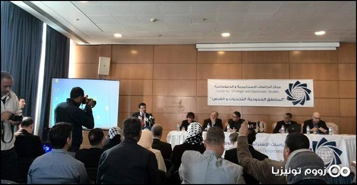 افتتح الندوة الدكتور رفيق عبد السلام وزير الخارجية السابق و رئيس مركز الدراسات الإستراتيجية و الدبلوماسية ، بكلمة تأطيرية ، قدم فيها الخطوط العريضة ، و أهم المحاور ، بعد أن تحدث على أهمية المناطق الحدودية ، في علاقة بالوضع الداخلي التونسي من جهة ، و كذلك علاقة تونس مع جيرانها الجزائر و ليبيا