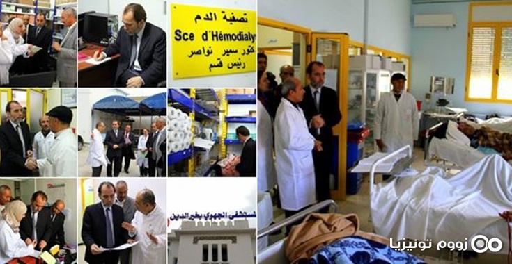حيث تفقّد مختلف أقسام هذا المستشفى بداية بقسم طب الاستعجالي، ثمّ مركز تصفية الدّم وقسم التصوير والأشعّة بالإضافة إلى مخبر التحاليل وقسم العيادات الخارجيّة.