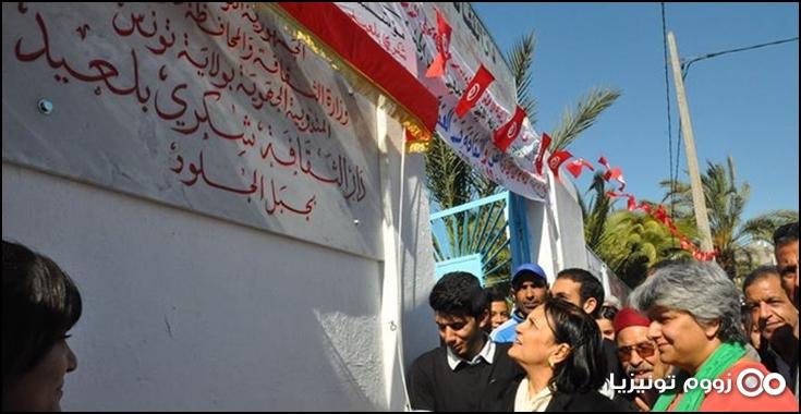 دشنت وزيرة الثقافة والمحافظة على التراث لطيفة الأخضر، رسميا، مساء الجمعة 10 فيفري 2015 دار الثقافة شكري بلعيد بجبل الجلود.