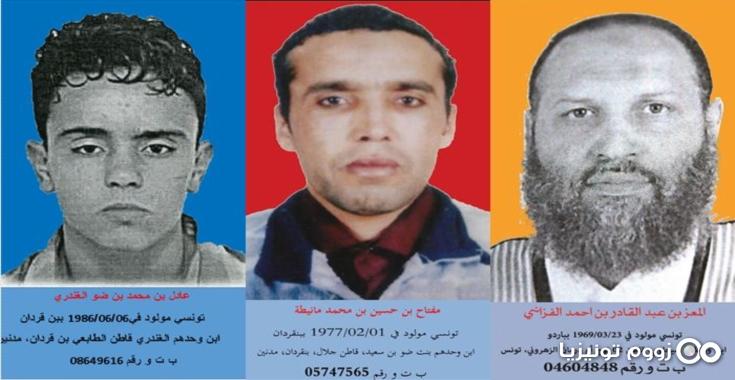 دعت وزارة الدّاخليّة اليوم السبت 05 مارس 2016 في بلاغ لها الإبلاغ السّريع والأكيد عن ثلاثة عناصر إرهابيّة وهم "المعزّ بن عبد القادر بن أحمد الفزّاني"، "مفتاح بن حسين بن محمّد مانيطة" و"عادل بن محمّد بن ضو الغندري"، عند مشاهدتهم أو الحصول على أيّ معلومات تخصّ مكان تواجدهم أو تحرّكاتهم.