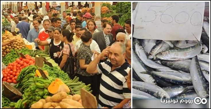 ولا يستطيع التونسي اليوم حتى الاقتراب من محلات بائعي السمك بما أنّ أقل نوع من السمك في الأسواق التابعة للأحياء الشعبية في تونس العاصمة يصل إلى 3800، بينما يصل سعر كيلو الفلفل إلى 1500، كيلو البطاطا 1000، وسعر كيلو الطماطم 800.