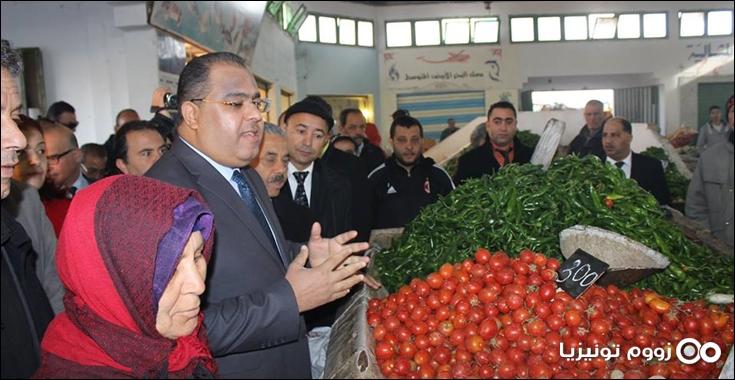 و دعا الوزير إلى ضرورة التصدي للإنتصاب الفوضوي ومزيد تكثيف المراقبة الاقتصادية، كما قام بزيارة فجئية إلى السوق البلدي بالمرناقية اين عاين السوق وطالب كذلك باعادة تهيئة السوق حيث تعهد بالنظر فى المسالة العقارية لقطعة الارض التى تم تخصيصها للسوق بالتعاون مع السلط المحلية والجهوية.