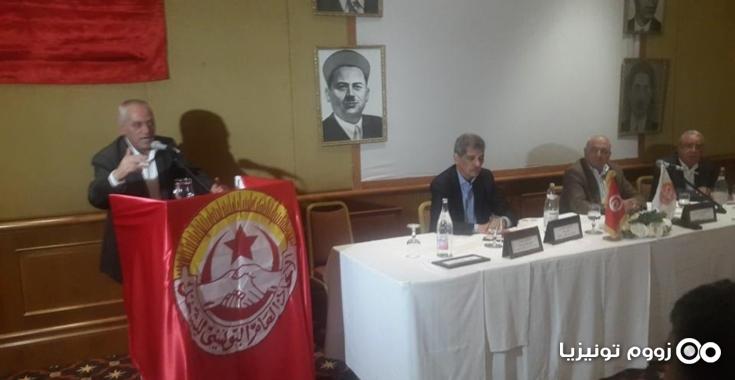 ولاحظ الأمين العام أن المرحلة القادمة تتطلب دعم العمل في الإدارات الحكومية والعمومية مؤكدا أن الاتحاد ليس من الأطراف التي تشجع على التواكل بل مع دفع العمل والإنتاج حتى يتم المحافظة على القطاع العام و منع أي محاولات لتفكيكه ومنع أي سوء تصرف أو محاباة داخلها .