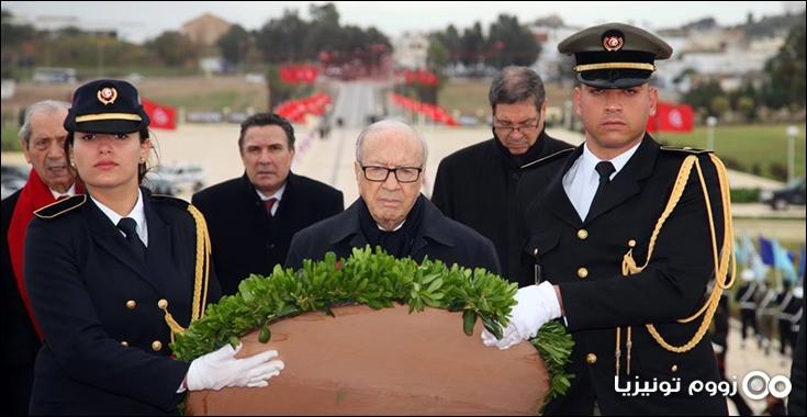 أشرف رئيس الجمهورية الباجي قايد السبسي صباح يوم الاثنين 09 أفريل 2018 بروضة الشهداء بالسيجومي على موكب إحياء الذكرى 80 ل ...