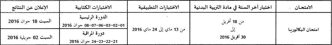 وفيما يلي روزنامة امتحانات الباكالوريا لسنة 2016:
